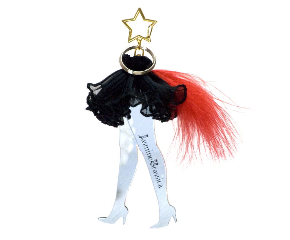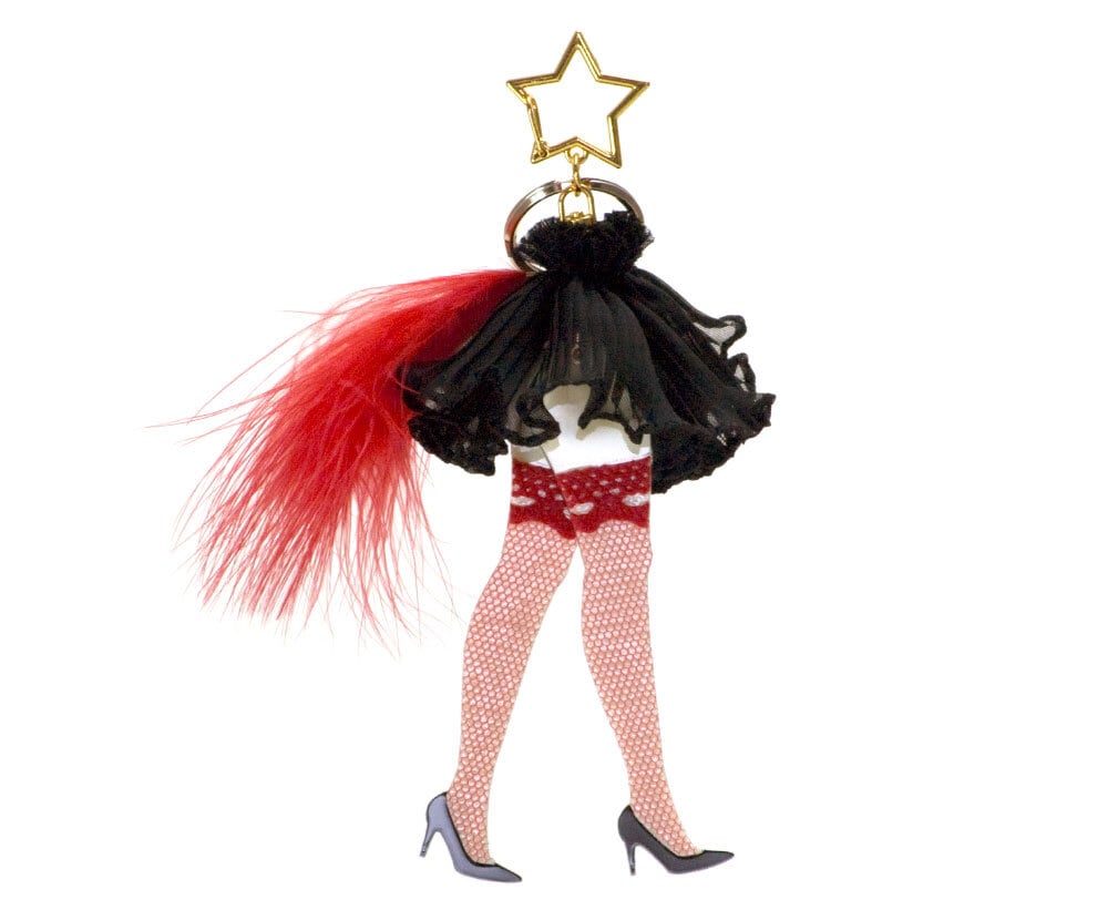 アクリル板で脚を切り抜き、チュールやレースで網タイツを表現しました。