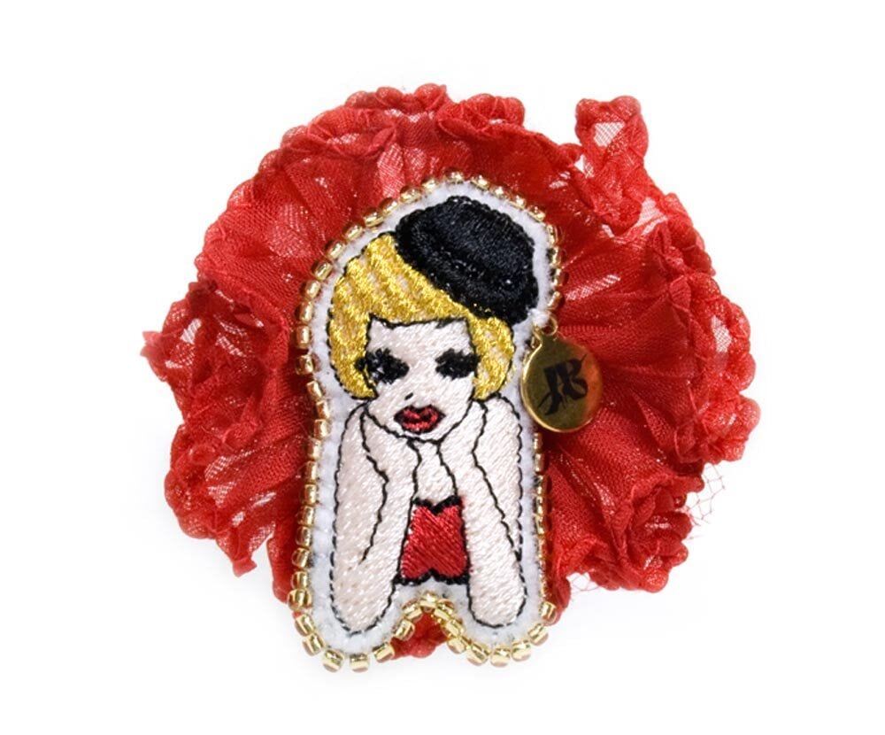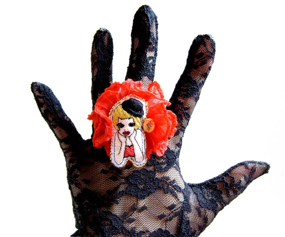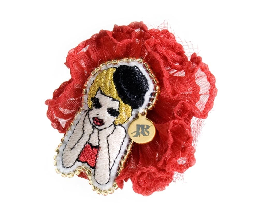 縁にビーズをあしらった刺繍モチーフにスカートに見立てたフリルやチュールを重ねてリングにしました。