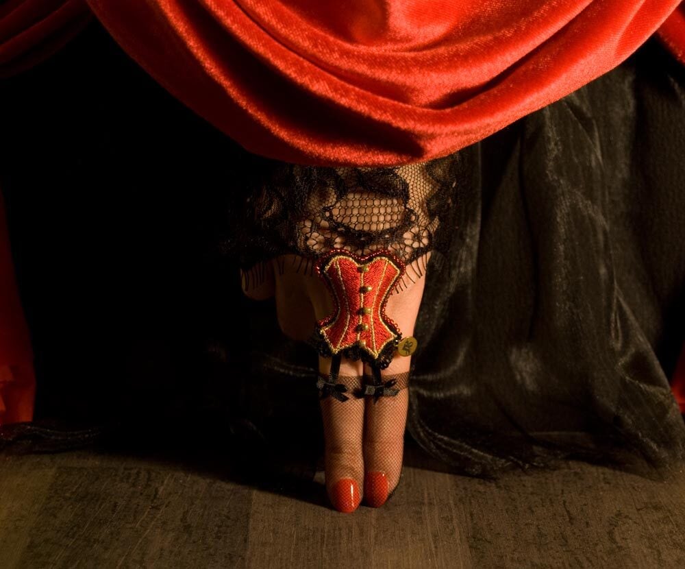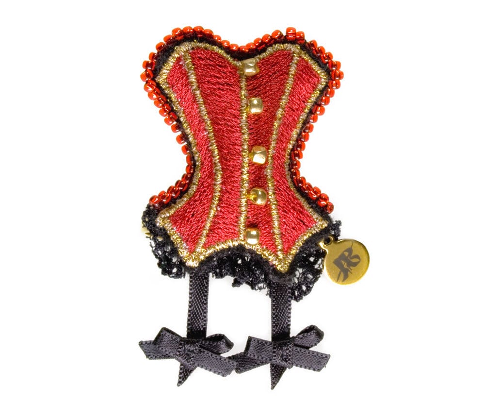 定番の赤いコルセットにガーターベルトが色っぽい。