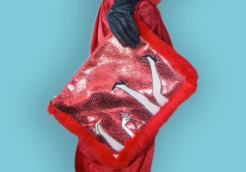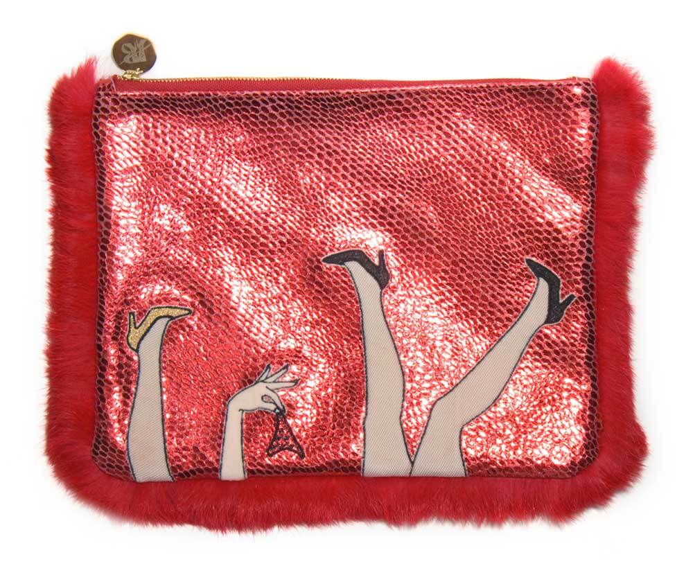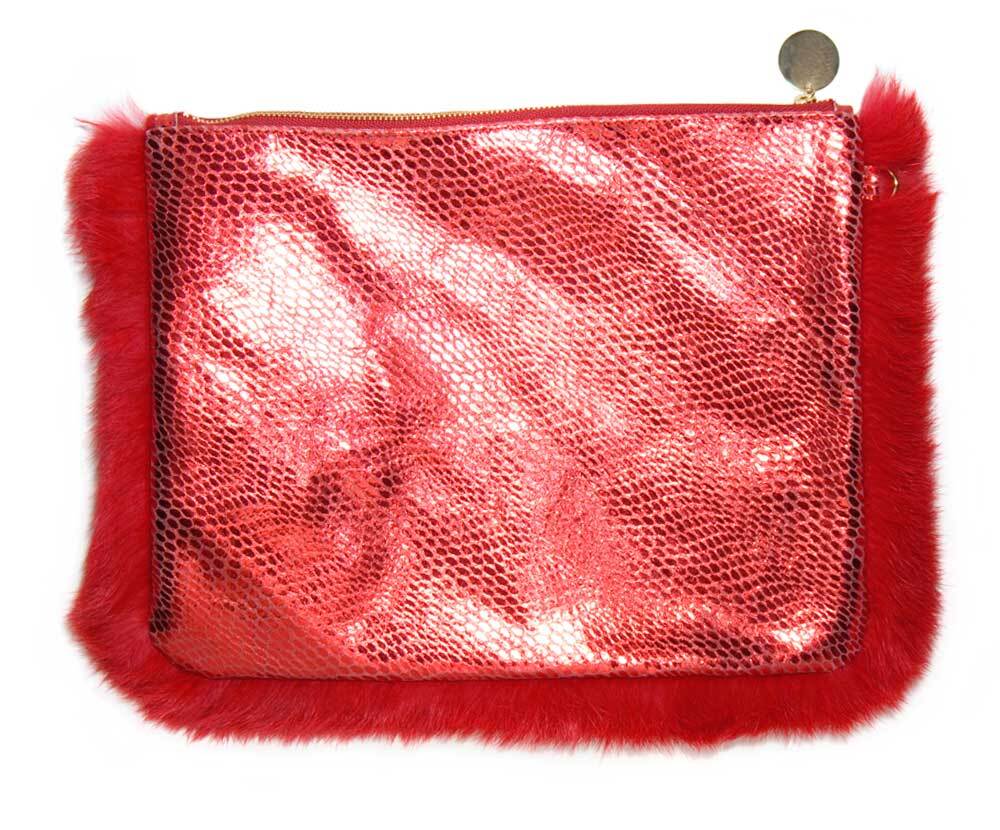 真っ赤なメタリックパイソン、ファーのクラッチバッグに開放感あふれる女の子たちをほどこしました。
