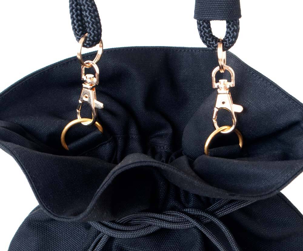 ショルダーを長くして斜めがけに、短くして肩掛けや、絞らずにバケツバッグにしたり色々な使い方ができます。