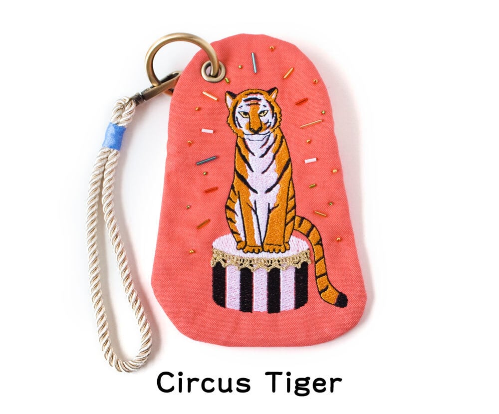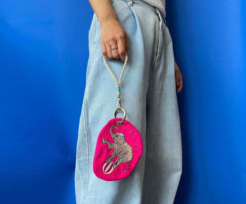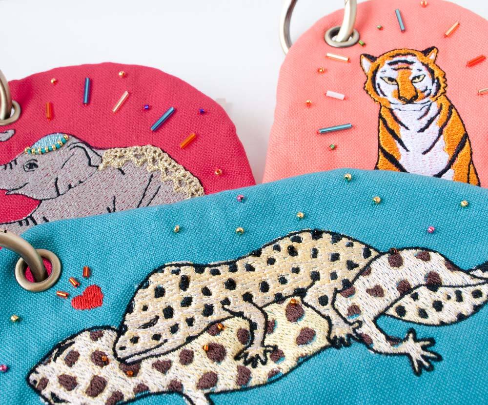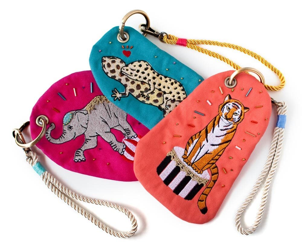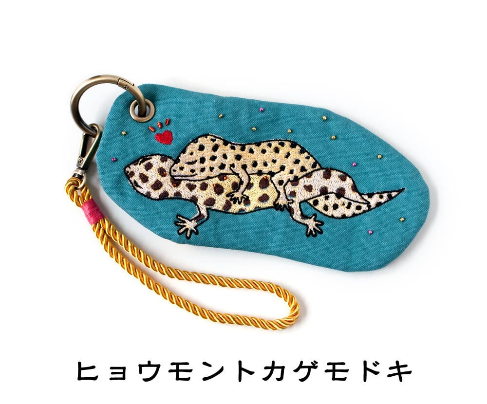 カラビナ付きの、カラフルなアニマルデザインのポーチです。