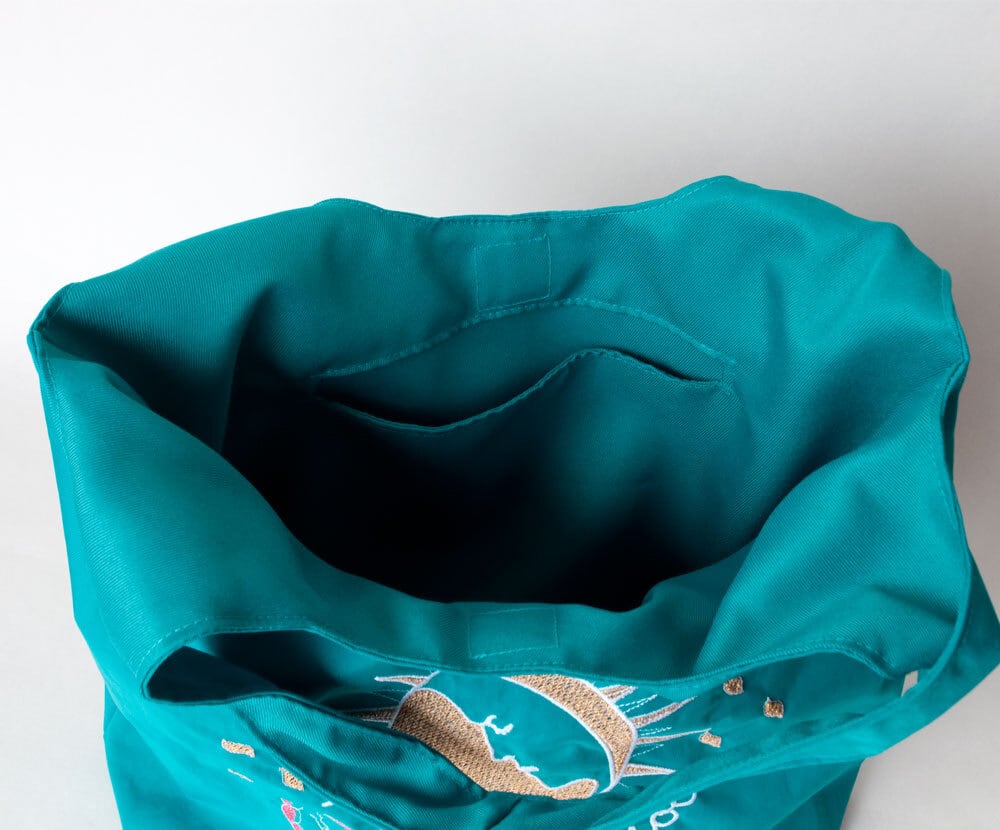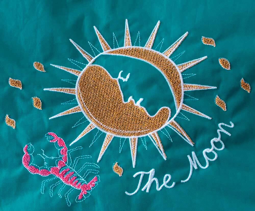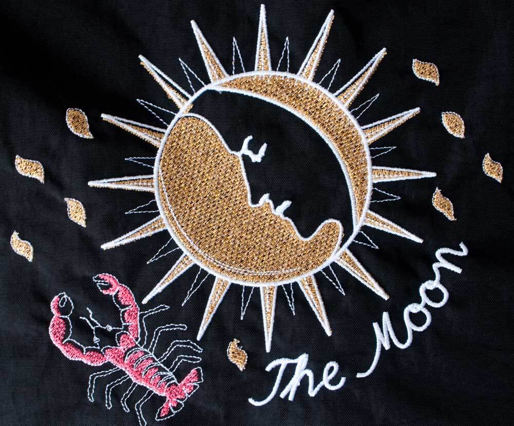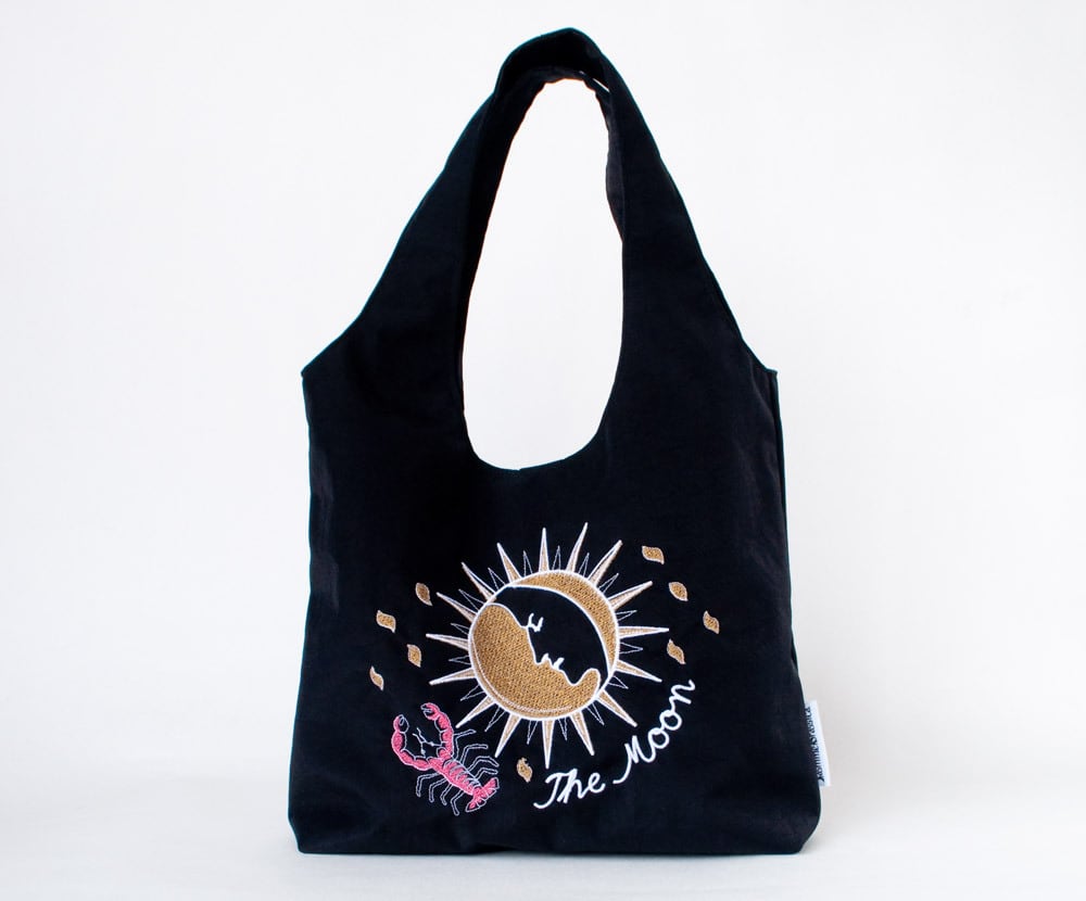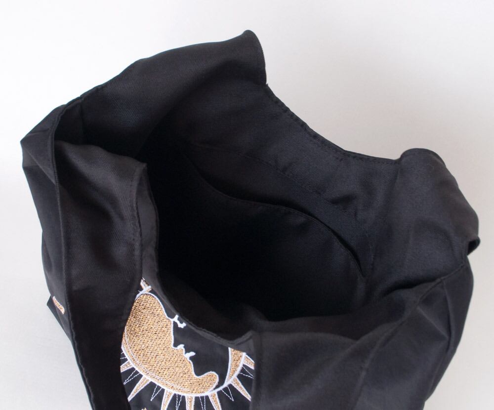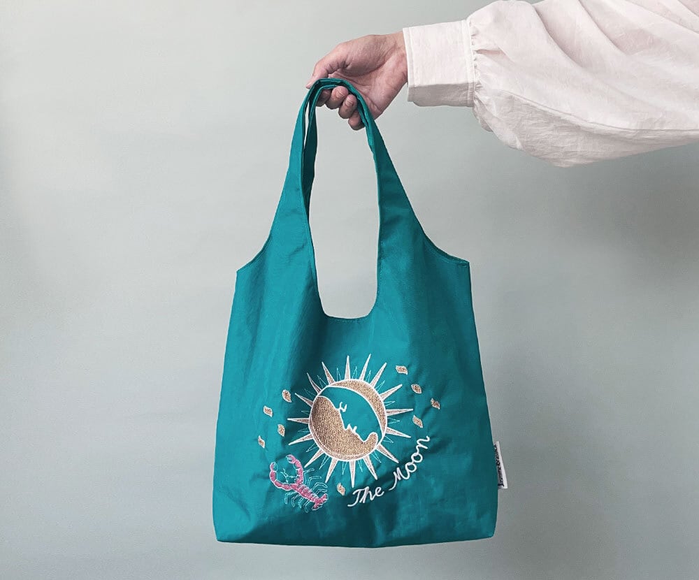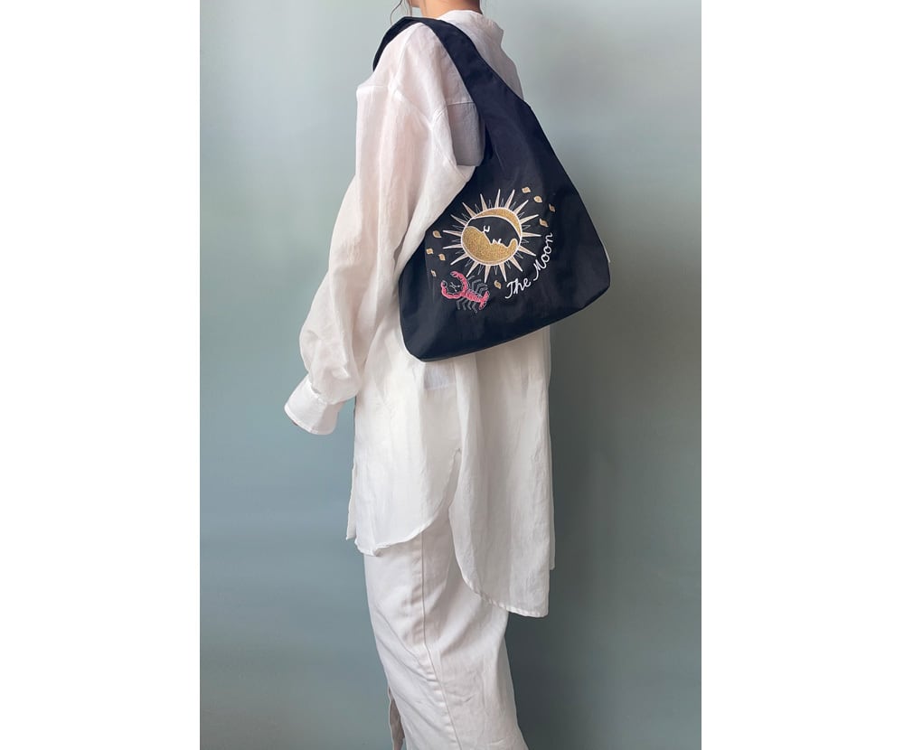 タロットカードのムーンをモチーフに刺繍した軽いのにしっかりとしたナイロン素材のバッグです。