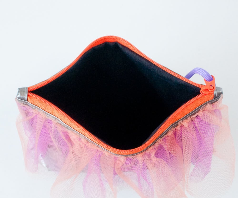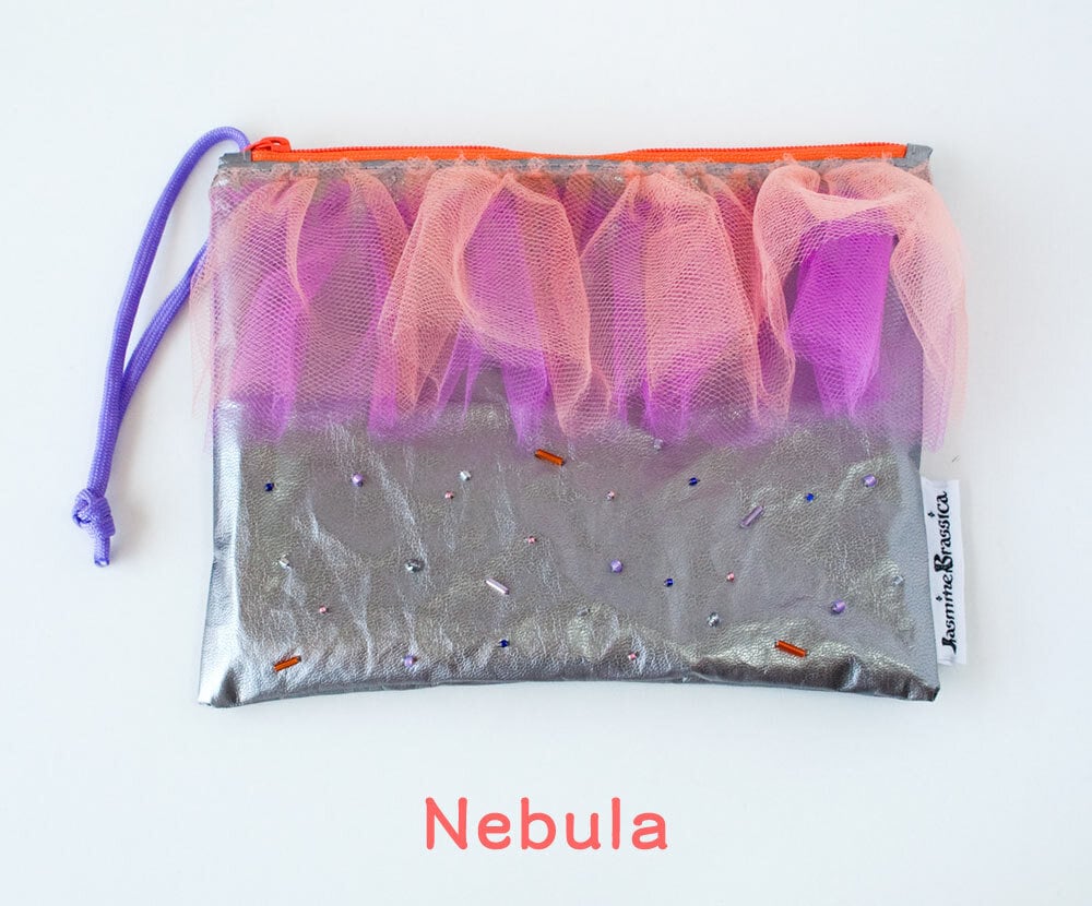ピーチのような淡いオレンジとパープルのチュールを合わせて、ガスや塵から出来る美しい雲のような星雲をイメージしています。