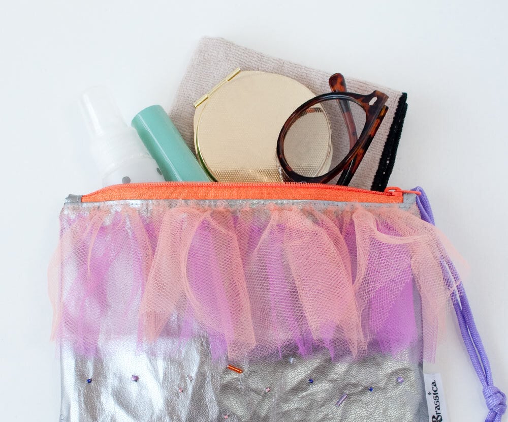 シンプルなフラットポーチなので筆記用具を入れてペンケースに、マスクや化粧品を入れてコスメポーチに、モバイルバッテリーやイヤホンなどのガジェット入れに、そのほかにも裁縫道具やお薬やおやつなど色々なことに使えます。