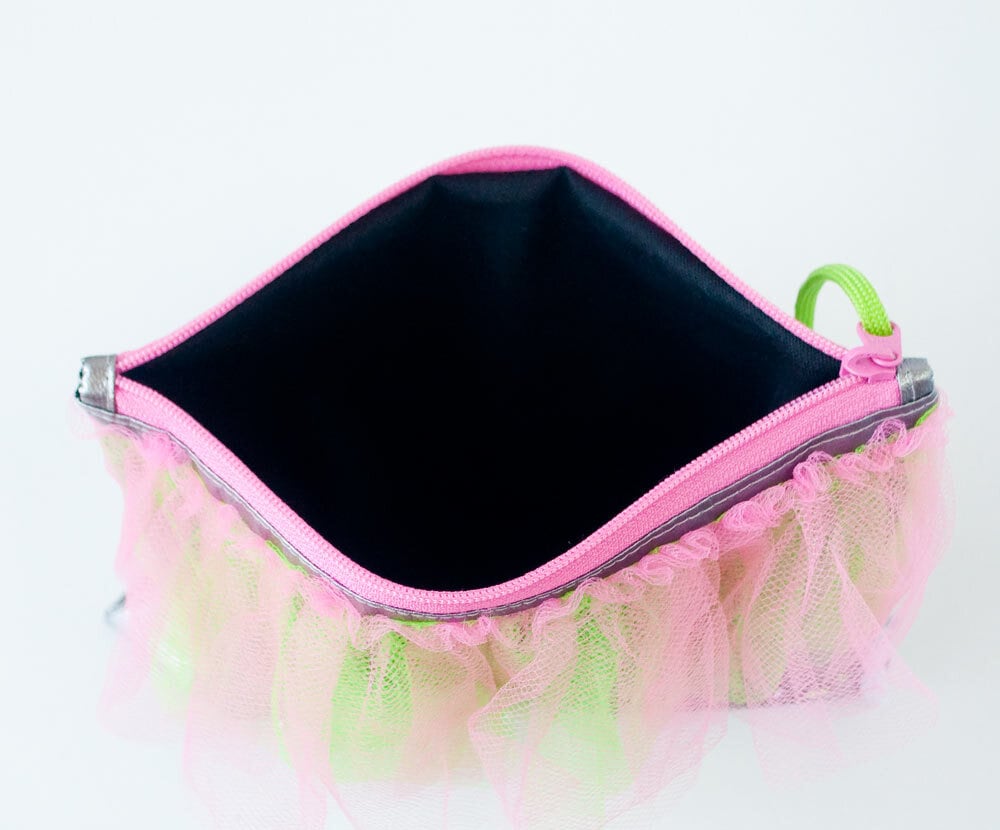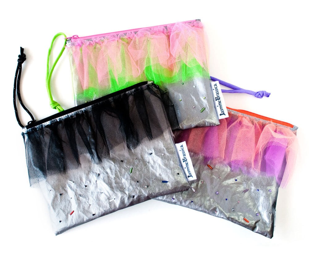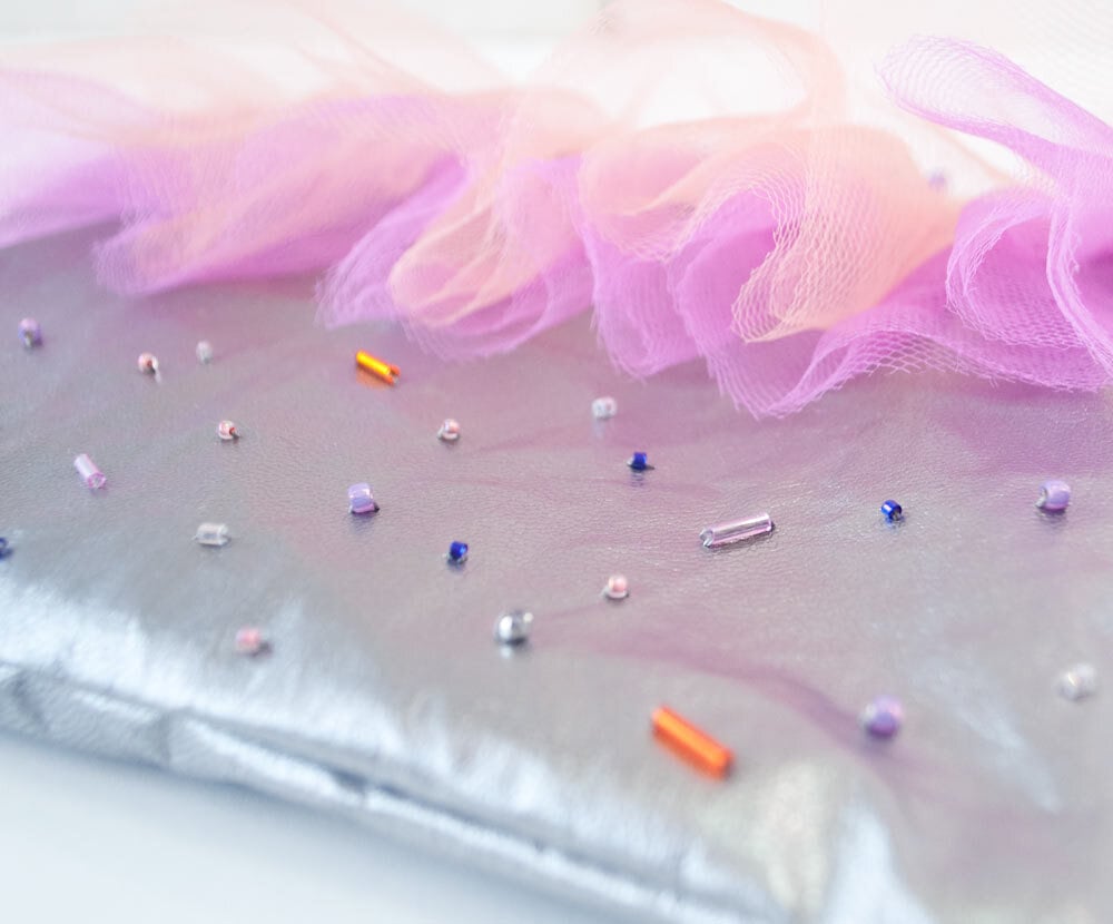 クシャっとしたシルバーの生地に幾重にも重なったような二色のチュールが可愛い。