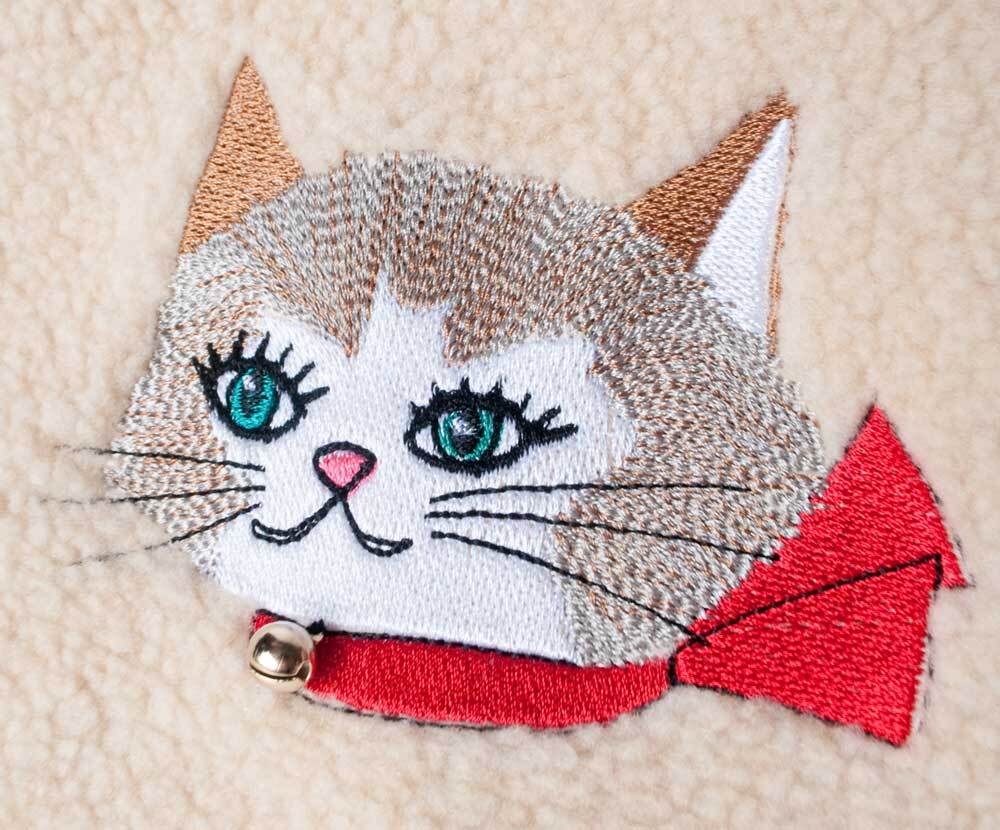 リボンと鈴のついた猫ちゃんの刺繍の巾着バッグです。