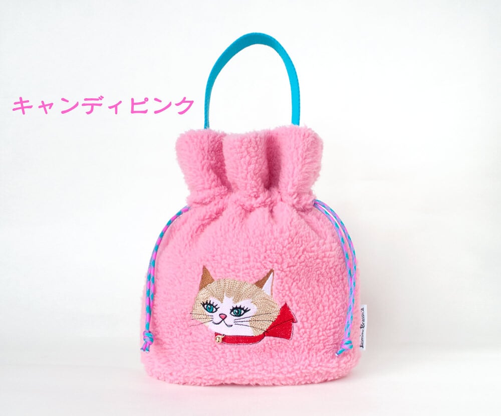 Kitsch bell cat ボア巾着バッグ