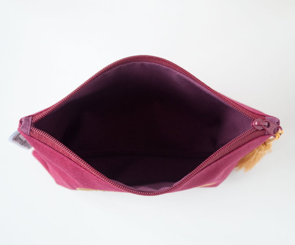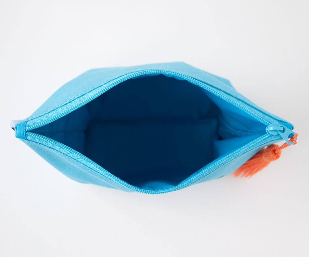 シンプルなフラットポーチなので筆記用具を入れてペンケースに、マスクや化粧品を入れてコスメポーチに、モバイルバッテリーやイヤホンなどのガジェット入れに、そのほかにも裁縫道具やお薬やおやつなど色々なことに使えます。